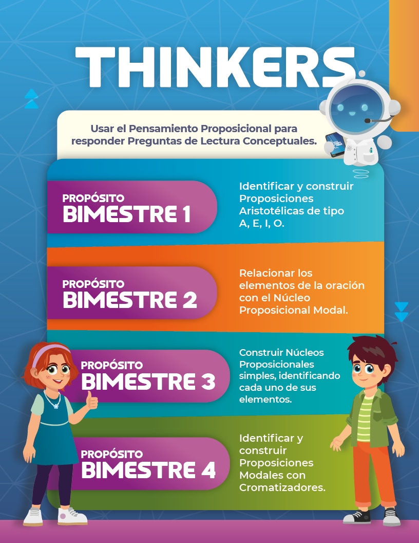Renueva la experiencia de lectura y pensamiento en el aula. A través de los títulos Talkers, Builders, Players, Thinkers y Browsers, los estudiantes recorren un camino progresivo en el desarrollo del pensamiento, fortaleciendo sus habilidades CRIC (Concordar, Relievar, Inferir y Construir) desde propuestas creativas, retadoras y conectadas con su vida cotidiana.
